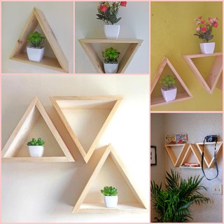 Rak Dinding Kayu Segitiga Rak Pajangan Melayang Hiasan Dinding