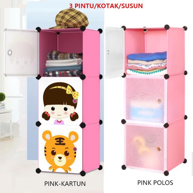 Termurah Lemari Baju Anak Plastik Cabinet Anti Air 3 Susun 3 Pintu