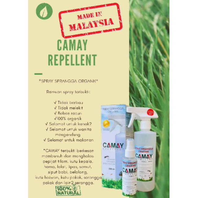 Camay Repellent Organic Spray Serangga Ubat Kutu Lipas Pepijat